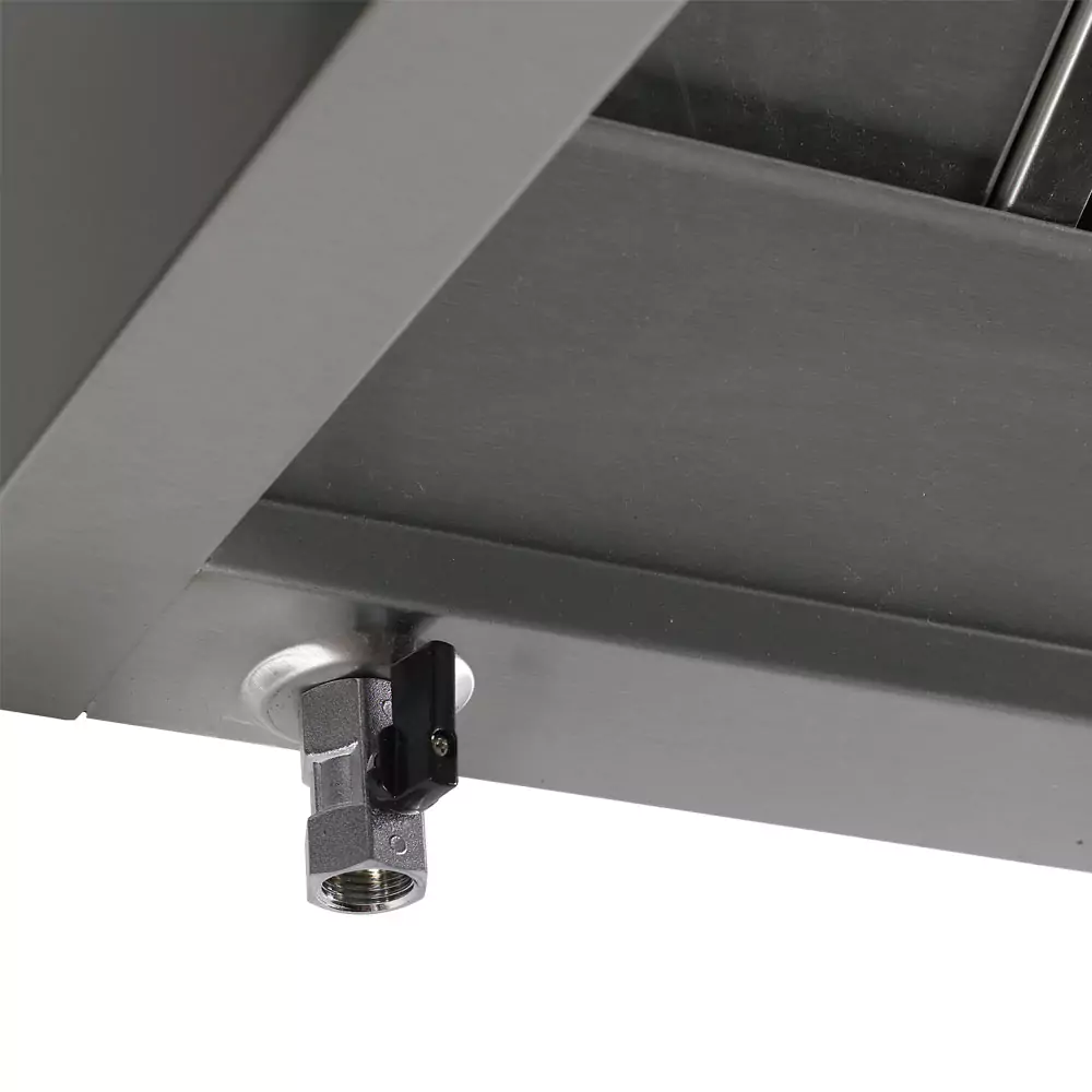 Derudover er emfanget udstyret med en perifert svejset fedtopsamlingskanal, som effektivt leder fedt og affald væk fra systemet og ind i en opsamler. Dette sikrer, at fedt ikke samles i emfanget, hvilket kan føre til tilstoppede kanaler og dårligere funktion. Udsugningshanen nedenunder gør det muligt at fjerne opsamlet fedt nemt og hurtigt, hvilket gør vedligeholdelsen meget lettere og mere effektiv.